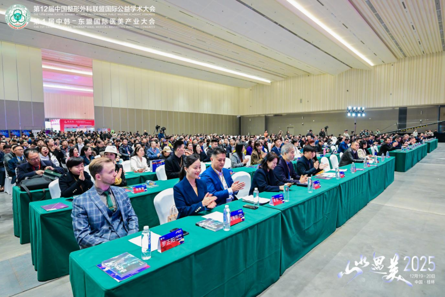 2025 年 12 月 20日,世界内镜医师协会第 12 届中国整形外科联盟国际公益学术大会暨首届中韩 — 东盟国际医美产业大会在桂林圆满落幕。本届大会汇聚中国、韩国、泰国、俄罗斯、印尼、越南等近七个国家的行业代表及近万名医美专业人士,搭建起亚洲医美领域高规格的学术交流与产业合作平台,成为年度最具影响力的行业盛会之一。